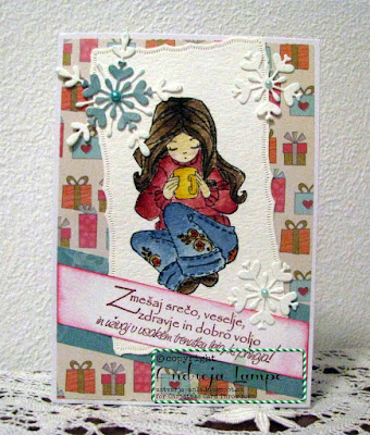 We loved the cute mug next to the cookie and the chocolate kiss! The colors in the designer papers are terrific, too.
